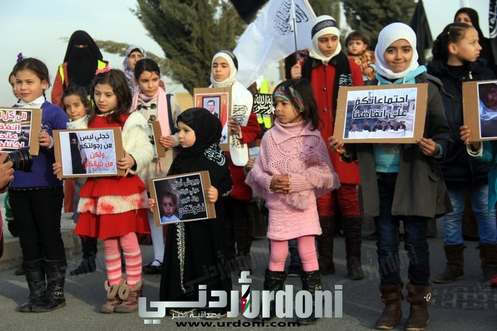 أردني - نظم حزب التحرير وقفة احتجاجية قبالة السفارة السورية في عمان ضد مؤتمر جنيف 2 المنعقد في سويسرا لحل الأزمة السورية.
