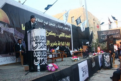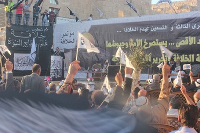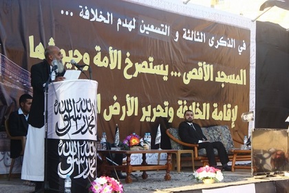 وشدد أبو عرقوب على تحرير فلسطين بقوله "فإننا نرى الخلافةَ تحررُ الأقصى وتقتلعُ كيانَ يهودَ من جذوره لأننا نحتكم لشرع الله.. فلا نرى إلا تحريكَ الجيوش لتحرير فلسطينَ حلا، ومَن يرى غير ذلك الطريقِ الشرعيِّ فقد زاغ عن طريقِ الحقِّ واتّبع خارطةَ الطريقِ الأمريكية وهرطقاتِ الرباعيةِ وشعوذاتِ كارترَ ووعودَ كيري واوباما".