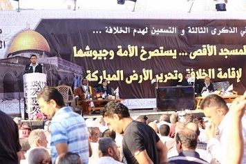 وأضاف "لم نجتمع لنبكي مجدا فقدناه بل لنقرع الآذان فتعيها آذان واعية ويزداد وعيها على حقيقة هي أن الخلاص لهذه الأمة لا يكون إلا بالخلافة، فها هو الكفر ودوله يعيث في بلاد المسلمين فسادا لم تعرف البشرية مثيلا له ويكفي للدلالة على ذلك ما يفعله المجرمون في أفغانستان والعراق والشام ومصر وليبيا واليمن وغيرها من ديار الإسلام وعلى وجه الخصوص ما يعيثه يهود فسادا في الأرض المباركة فلسطين وفي الأقصى فوقه وتحته وحوله.