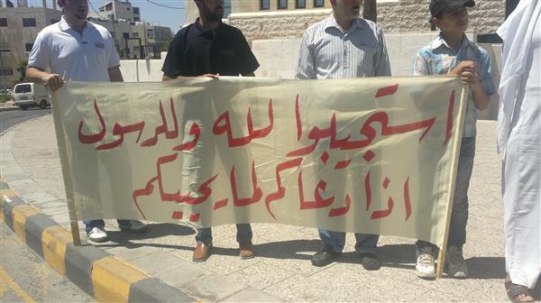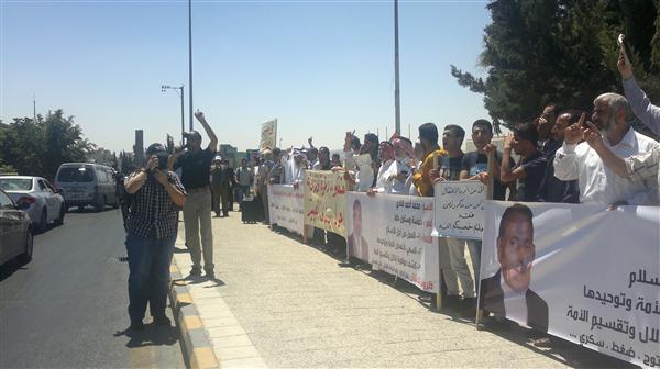 وقال الناطق الاعلامي باسم حزب التحرير ممدوح أبو سوا قطيشات إن "أهالي وذوي وأصدقاء المعتقلين الخمسة من أعضاء الحزب، نفذوا وقفة احتجاجية أمام رئاسة الوزراء، للمطالبة بالإفراج عن ذويهم".