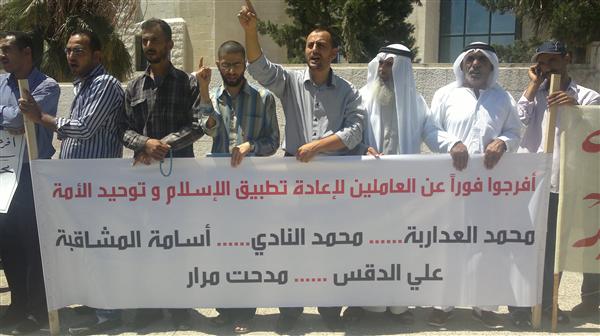 يذكر أن الأجهزة الأمنية تعتقل خمسة أعضاء من حزب التحرير هم علي الدقس ومدحت مرار وأحمد العداربة ومحمد النادي، وأسامة مشاقبة، وقد نفذ ذوو المعتقلين أكثر من وقفة واعتصام للمطالبة بالإفراج عنهم، وسلموا مذكرة لرئاسة الوزراء تطالب بضرورة وسرعة إطلاق سراح المعتقلين.