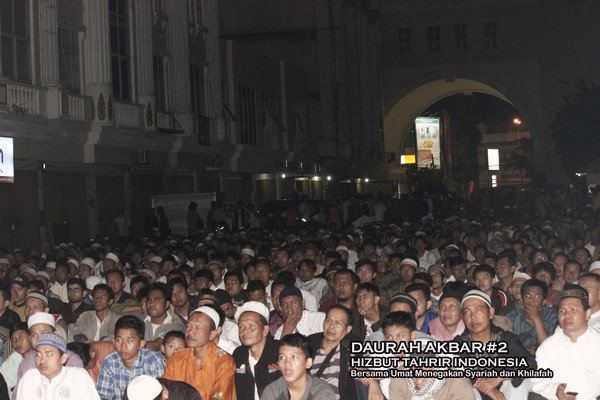 نظم حزب التحرير / إندونيسيا لقاءً عاماً في ساحة مفتوحة بمقاطعة جاكرتا لدعوة المسلمين للانضمام لحزب التحرير والعمل معه لاستئناف الحياة الإسلامية عن طريق إقامة دولة الخلافة الراشدة على منهاج النبوة، وقد حضر اللقاء نحو ألفي مسلم من عامة الناس، وكان اللقاء بناءً مثمراً والحمد لله رب العالمين.