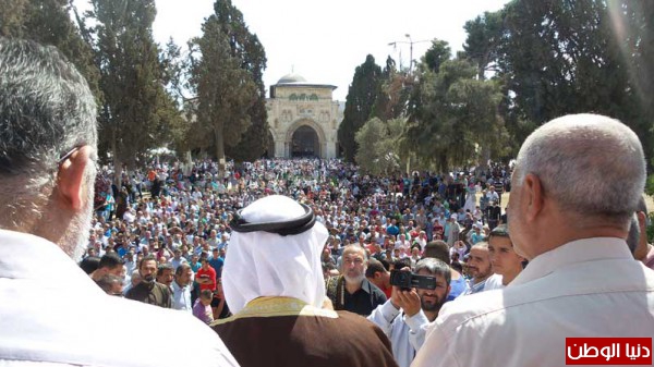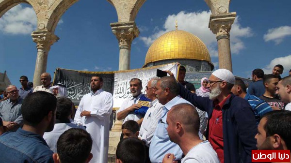 احتشد الآلاف في ساحات المسجد الأقصى بعد صلاة الجمعة من أنصار حزب التحرير لتوجيه نداء إلى المسلمين وجيوشهم لإقامة الدين ونصرة المسلمين وتحرير فلسطين،