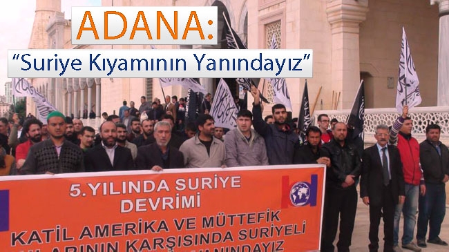 نظم حزب التحرير / ولاية تركيا وأنصاره في مدينة أضنة عقب صلاة الجمعة 22 جمادى الأولى 1436هـ الموافق 13 آذار/مارس 2015م وقفة ضد التحالف الصليبي ونصرة لثورة أهل الشام المخلصين تحت عنوان "نحن إلى جانب ثورة الشام"، وذلك بمناسبة الذكرى الخامسة للثورة السورية، حيث أقيمت صلاة الغائب على شهداء ثورة الشام، وألقي بيان صحفي في مسجد سابانجي المركزي في أضنة، في الذكرى الخامسة للثورة السورية.