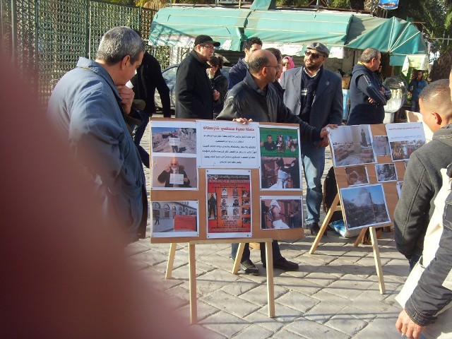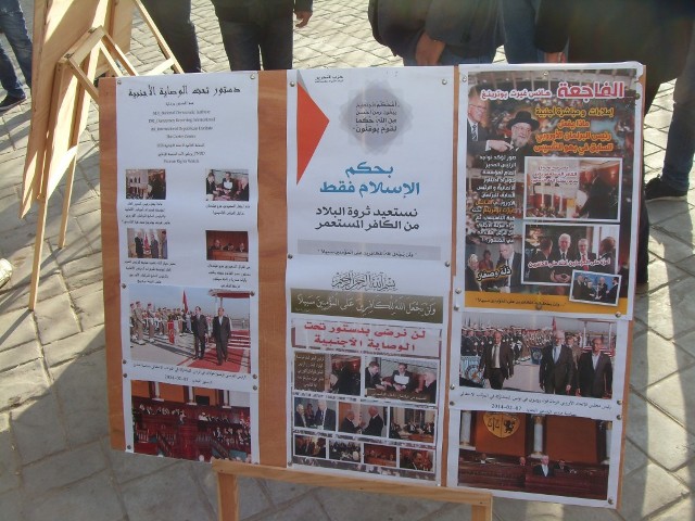 نظم شباب حزب التحرير / تونس نقطة حوار مع عرض للصور تحت عنوان "حرب الغرب الكافر على الإسلام والمسلمين" بساحة الباساج بالعاصمة تونس.