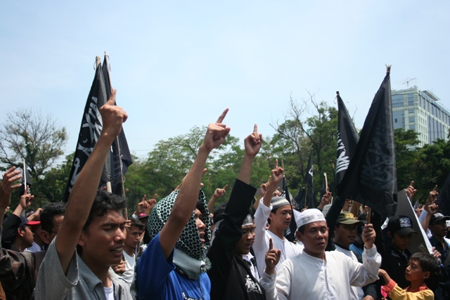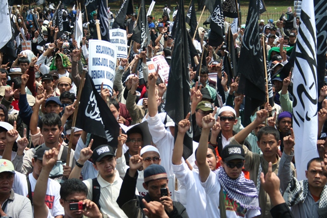 حضر هذا النشاط ما يزيد عن العشرة الآف مسلم وانتهى التجمع عند السفارة الأمريكية في جاكارتا