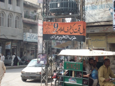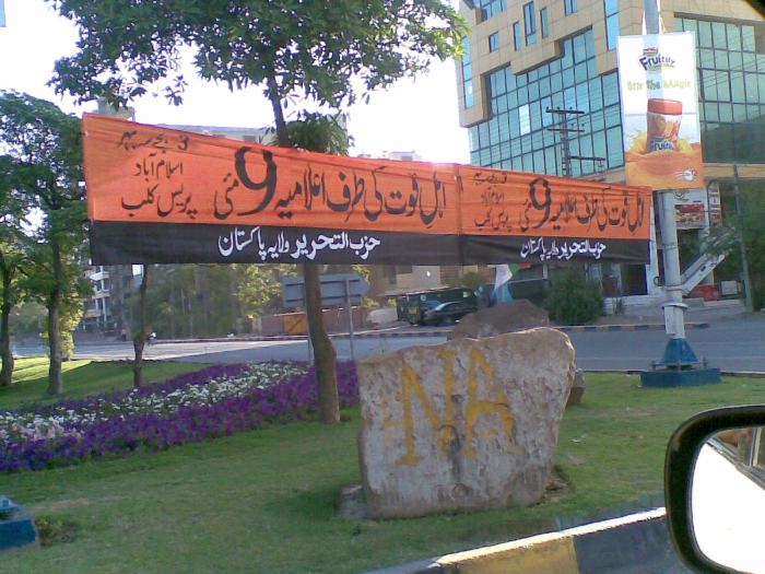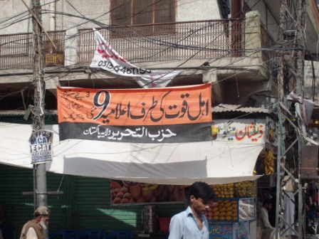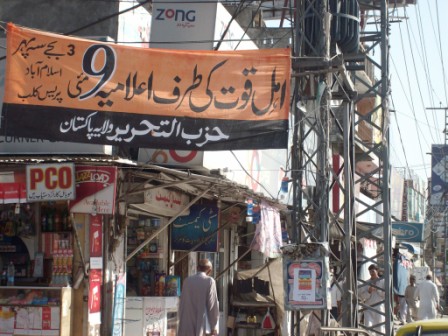 يافطات يدعو فيها حزب التحرير ولاية باكستان وسائل الإعلام إلى تغطية حملة الخطاب الموجه لأهل القوة