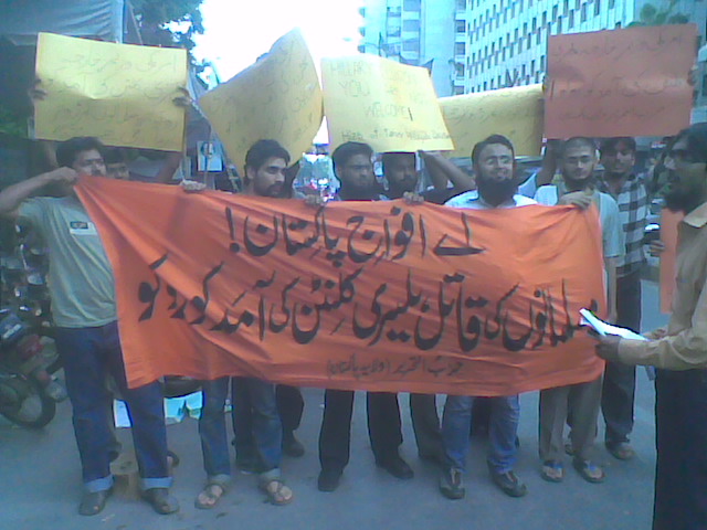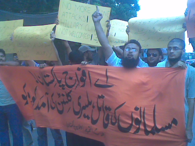 نظم حزب التحرير ولاية باكستان مسيرات في المدن الرئيسية الباكستانية للاحتجاج على زيارة وزيرة خارجية أمريكا هليري كلينتون