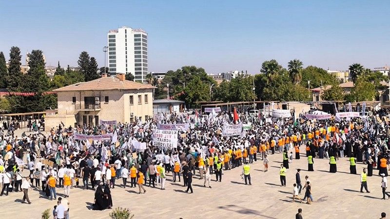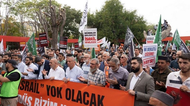 د ماسپښين تر لمانځه وروسته، په استانبول کې له «فاتح جومات» څخه تر «بېيازيت مېدان» پورې، په انقره کې له «کوچاتپه جومات» څخه تر «صحیه مېدان» پورې او په شانلي اورفا کې له «علي شلي پارک» څخه تر «رابعه مېدان» پورې مسلمانانو د «لا اله الا الله» بيرغونو، تکبيرونو او ترانو تر سيورې لاندې د طوفان الأقصی او د غزې د خلکو هرکلی وکړ او تاريخي صحنې يې جوړې کړې.