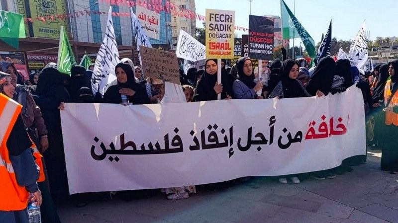 د یهودي مجرم رژیم لخوا د محاصره شوې غزې د مسلمانانو پر وړاندې له دوو کلونو راهیسې د روانې وحشیانه نسل وژنې پر وړاندې، چې تر دې دمه یې له ۲۴۰ زرو څخه زیات مسلمانان شهیدان، ټپیان یا ورک کړي دي، د حزب التحریر ـ ولایه ترکیه لخوا په پلازمېنه انقره، استانبول او شانلي اورفا ښارونو کې پراخ ولسي لاریونونه تر سره شول، چې سرلیک یې دا و: