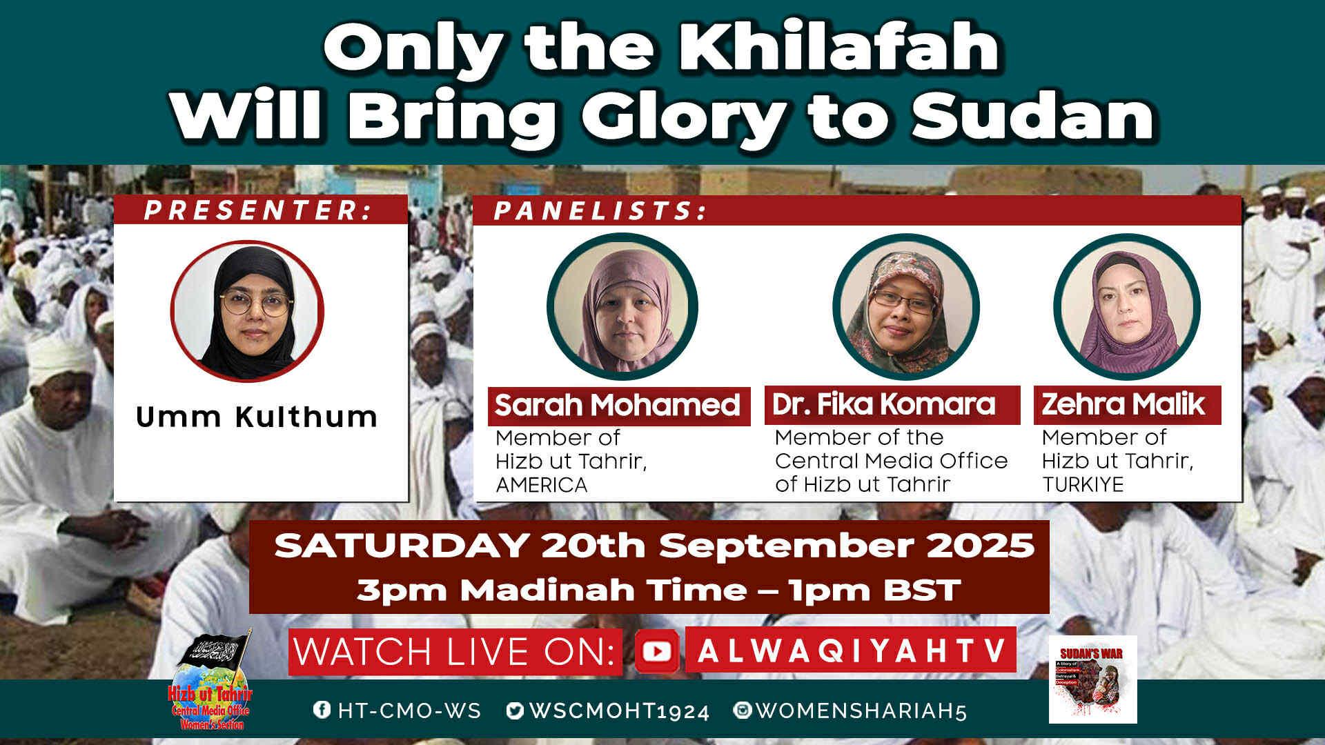 Al-Waqiyah TV: Khilafah Pekee Ndio Itakayoiletea Sudan Izza! Jumamosi, 28 Rabi-ul Awwal 1447 H - 20 Septemba 2025 M Kwa Maelezo Zaidi Bonyeza Hapa