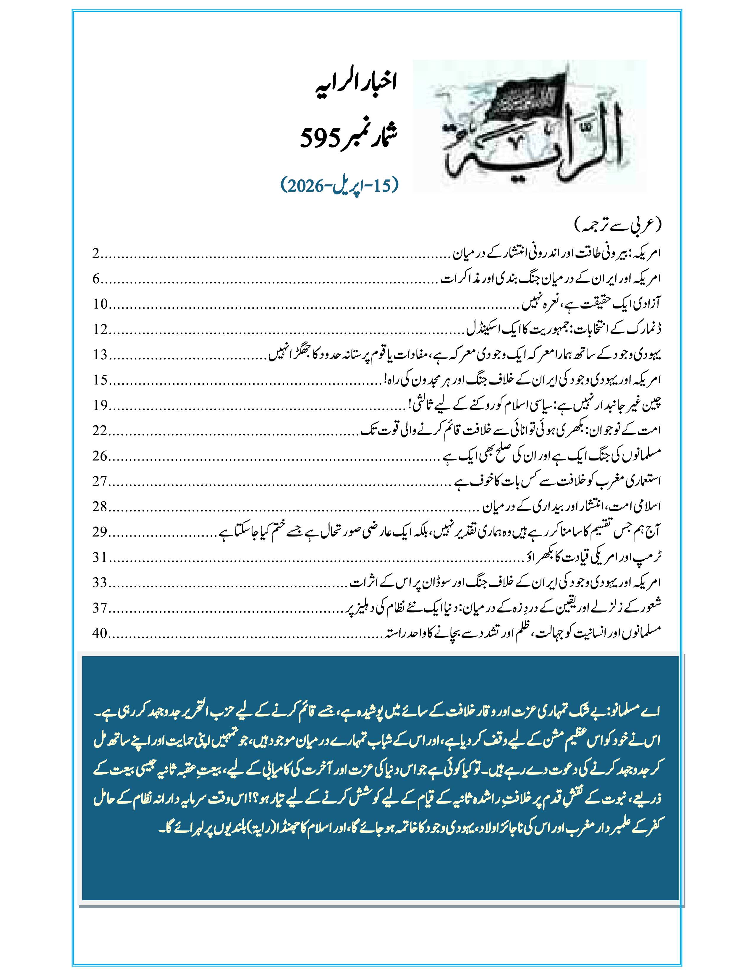 595 رایہ اخبا ر شمارہ نمبر