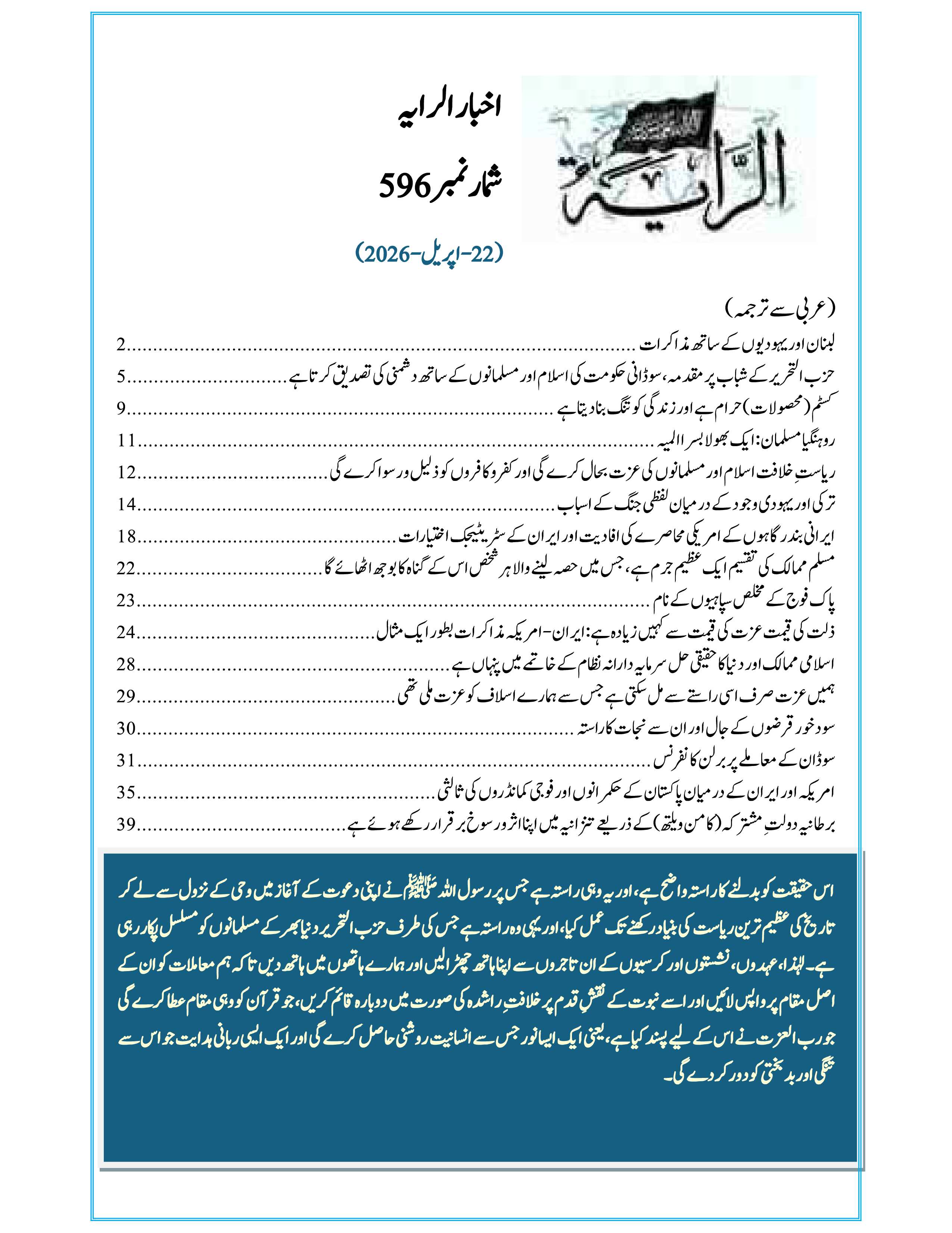 رایہ اخبا ر شمارہ نمبر596