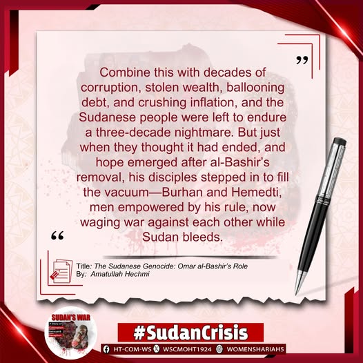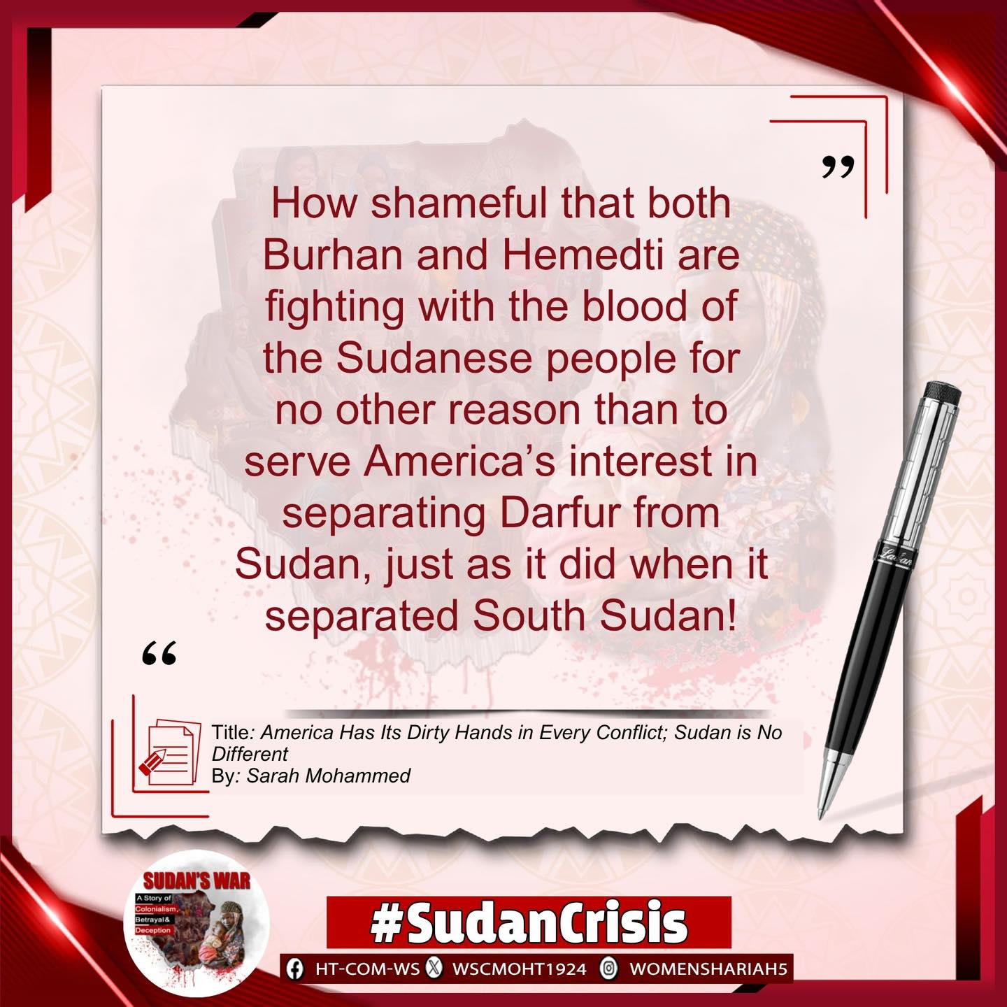 It is part of a global campaign launched by the Women’s Section in the Central Media Office of Hizb ut Tahrir entitled, "Sudan's War: A Story of Colonialism, Betrayal & Deception" that aims to bring an international spotlight on the deteriorating humanitarian catastrophe afflicting the Muslims of Sudan as a result of the current conflict plaguing the country which has been labelled the "Forgotten War"