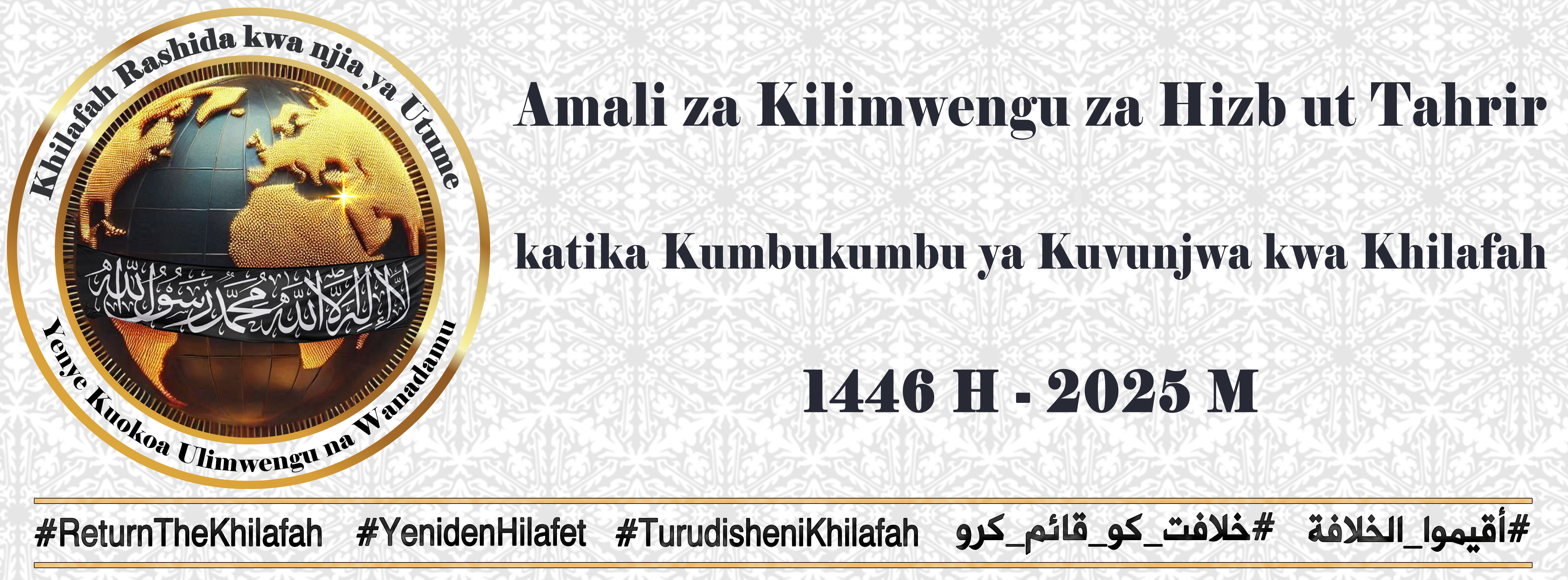 Katika mwezi wa Rajab Mtukufu mwaka huu 1446 H - 2025 M, tunakumbuka kumbukumbu mbaya ya miaka 104 ya kuvunjwa kwa Dola ya Kiislamu na wahalifu wa Waarabu na Waturuki, ambayo ilianzishwa na Bwana wa Mitume, Muhammad, rehma na amani ziwe juu yake, na Maswahaba zake watukufu na waliobarikiwa, Mwenyezi Mungu awe radhi nao, na kuondolewa kwa mfumo wa utawala wa Kiislamu (Khilafah) mnamo tarehe 28 Rajab Tukufu katika mwaka wa 1342 H sawia na tarehe 3 Machi 1924 M mikononi mwa mhalifu Mustafa Kemal. Wakati huo huo mauaji ya kikatili na mauaji ya halaiki yanayofanywa na umbile nyakuzi na la kutisha la Kiyahudi yanaendelea dhidi ya Waislamu wasio na ulinzi katika Ukanda wa Gaza na Ukingo wa Magharibi unaokaliwa kwa mabavu, ambayo yamesababisha kuuawa shahidi na kujeruhiwa kwa zaidi ya Waislamu elfu 170, wanaume na wanawake, hadi sasa, ambao wengi wao ni wanawake, watoto na wazee. Kwa upande mwingine, mapinduzi yaliyobarikiwa ya Ash-Sham yamefikia kitovu cha Makao ya Uislamu (ash-Sham) na kumng’oa dhalimu wa Damascus, lakini bado yanapitia mchakato mgumu na hatari katika jaribio la kutoroka kutoka kwenye mshiko wa mfumo wa dunia pamoja na nchi zake zote na vyama vyenye uadui kwa Uislamu na Waislamu!